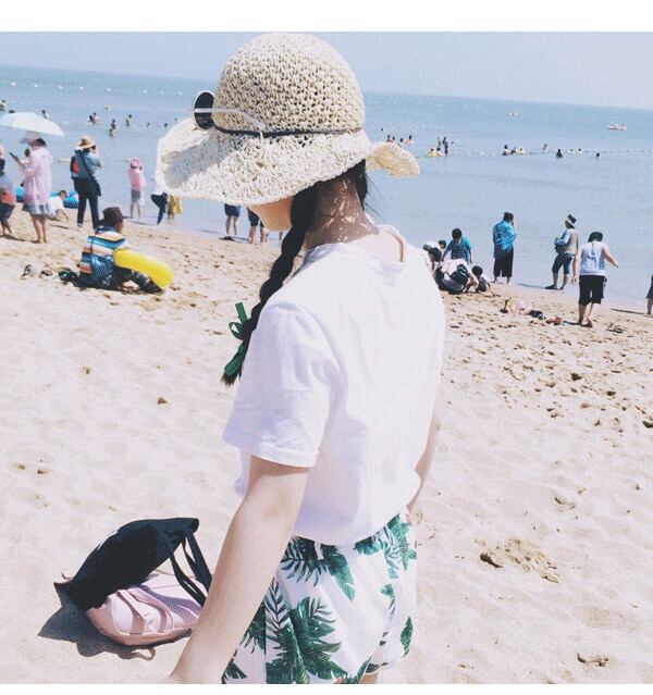 大きな軒のビーチ麦わら帽子夏の日よけ帽女性の小さな新鮮なバージョンの潮折り畳み式の休日の日よけ帽夏 ブラック・アイド・ピーズ88002561827