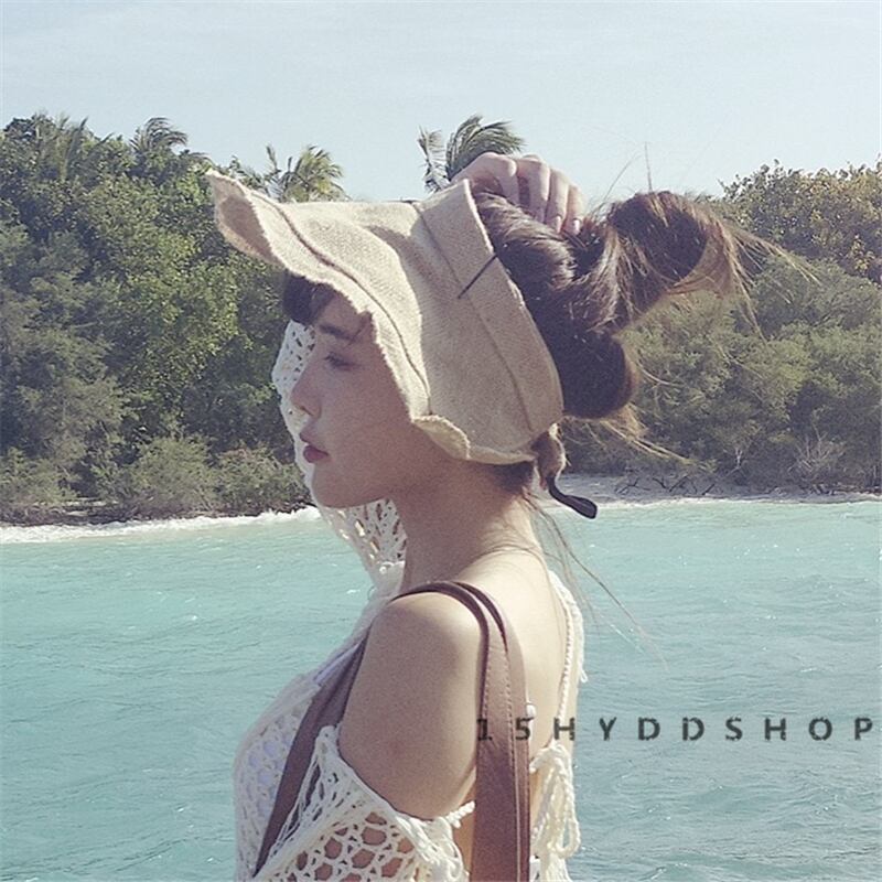 南折り畳み式リネン帽子女性夏日焼け止めアンチ紫外線空のトップサンシェードビッグエッジサンハット夏カバー ブラック・アイド・ピーズ38428815500