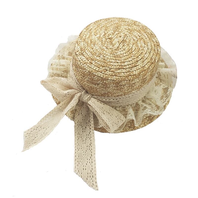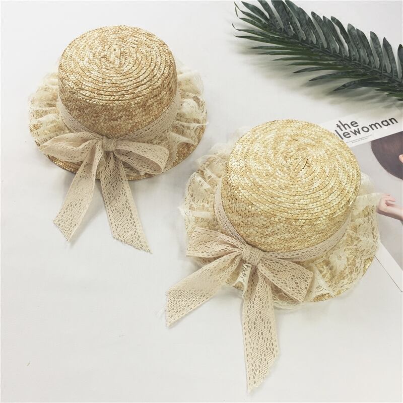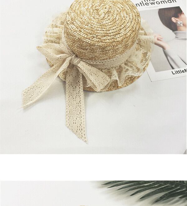 スタイルレースボウノット麦わら帽子夏の女性の気質フラットトップサンハットビーチホリデーサンハット潮 ブラック・アイド・ピーズ22112927100