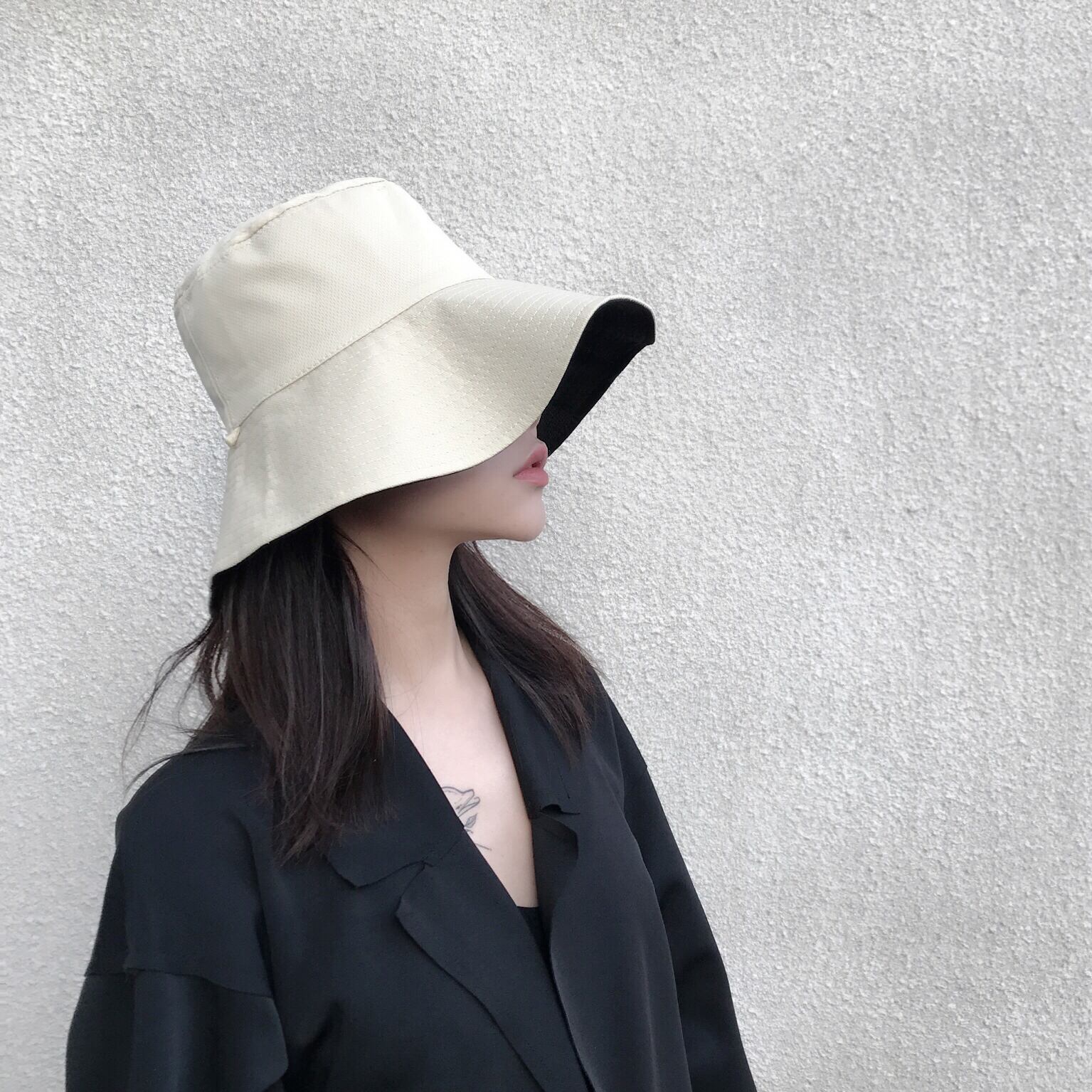 これらの両面フィッシャーマンハット女性の夏バージョン野生の抗紫外線日焼け止め日焼け止め日よけ帽夏の顔の潮 ブラック・アイド・ピーズ56693918905