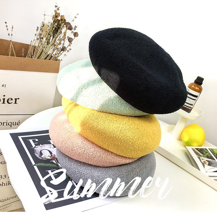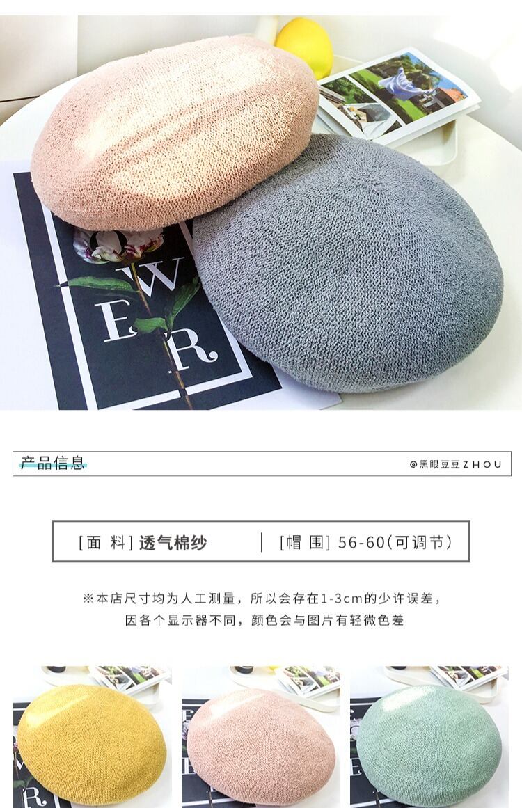 ベレー帽女性の春と夏の通気性のある日よけ帽綿とリネンアート八角形の帽子野生の学生画家の帽子の潮 ブラック・アイド・ピーズ90354718098