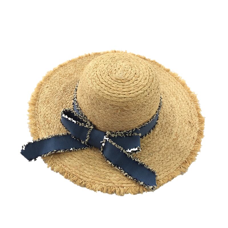 ボウノットのバージョン大きな軒ラフィア麦わら帽子女性夏の外出日よけ帽オールマッチ日焼け止めビーチ日よけ帽 ブラック・アイド・ピーズ32067631955