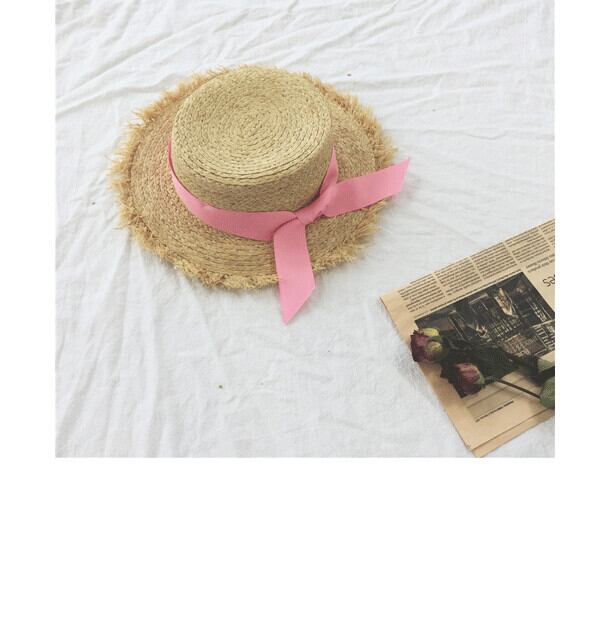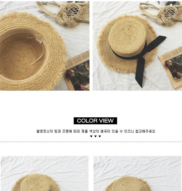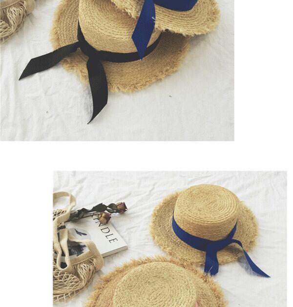帽子女性夏のお出かけ蝶結び麦わら帽子気質フラットシルクハットビーチ休暇レジャー日よけ帽日よけ帽 ブラック・アイド・ピーズ34969528293
