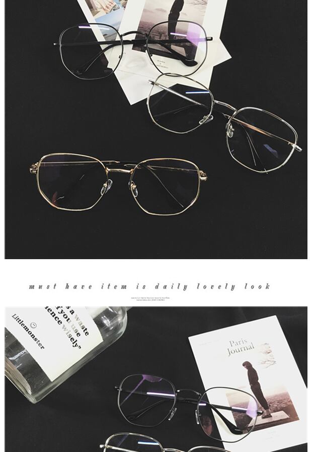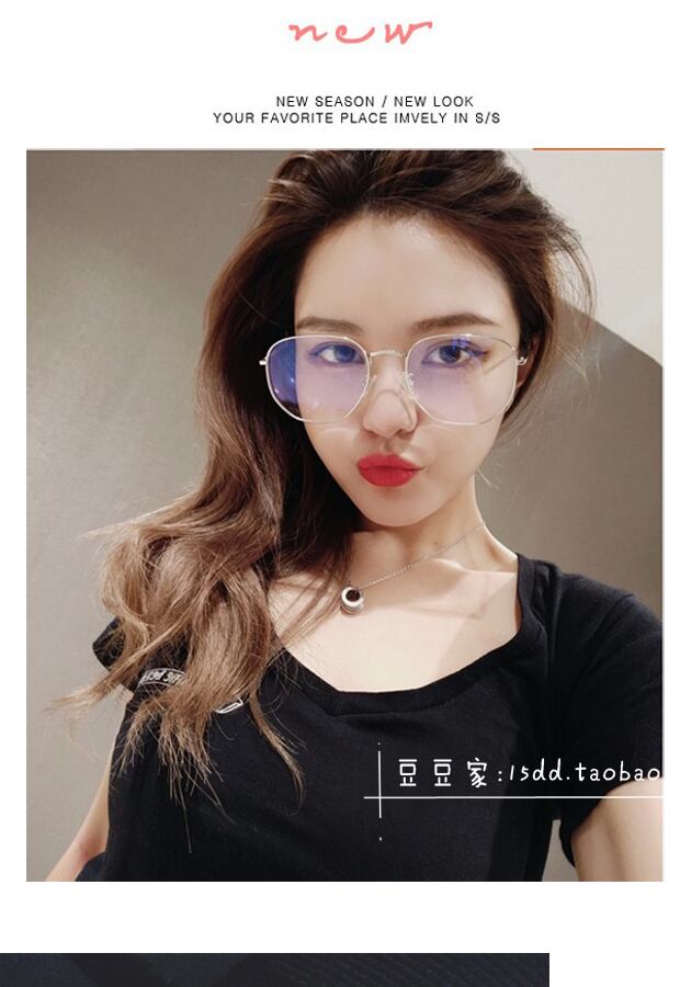 ネットセレブ同じグレスフレーム女性シックメタルプレーンフェイス薄いレトロフラットミラーラージフレームグレスフレーム ブラック・アイド・ピーズ17560814080