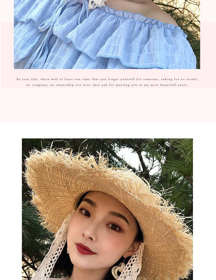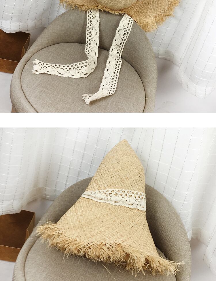 麦わら帽子女性の夏のレースネクタイ盆地帽子手作りラフィアビッグエッジビーチ帽子潮日焼け止め日よけ帽 ブラック・アイド・ピーズ38673336775
