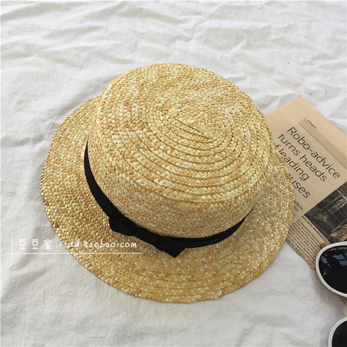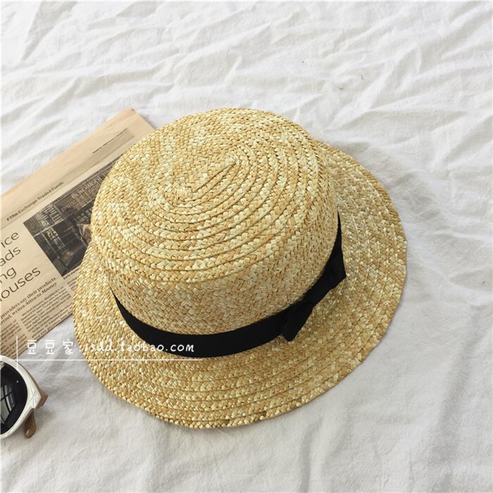 ナザ同じスタイルフラットトップフラットリム麦わら帽子小さな新鮮な日よけシルクハット夏の日よけ帽レディース夏バージョン ブラック・アイド・ピーズ15820111647
