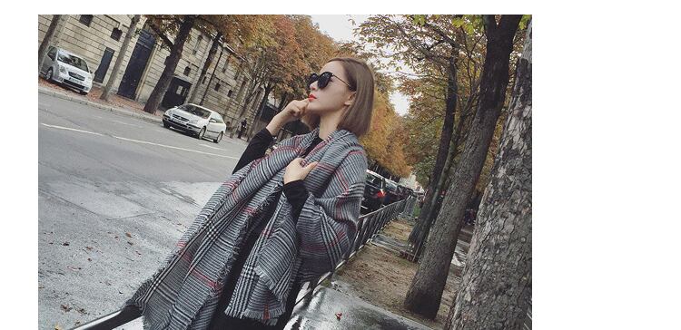スカーフ女性の冬の新しい格子縞のウールバージョンの野生の厚くされた暖かさの学生ショールデュアルユースビブ ブラック・アイド・ピーズ5630176905