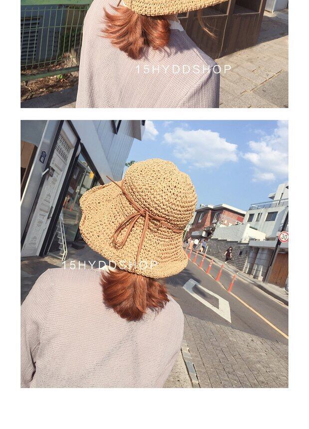 折りたたみ式麦わら帽子のバージョン女性の夏の小さな新鮮なビーチの日焼け止めカバー顔旅行野生の漁師の帽子日よけ帽の潮 ブラック・アイド・ピーズ8758947463