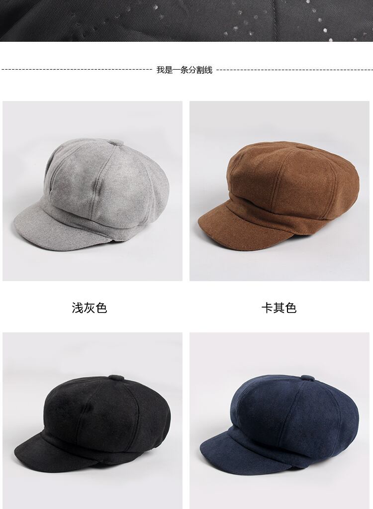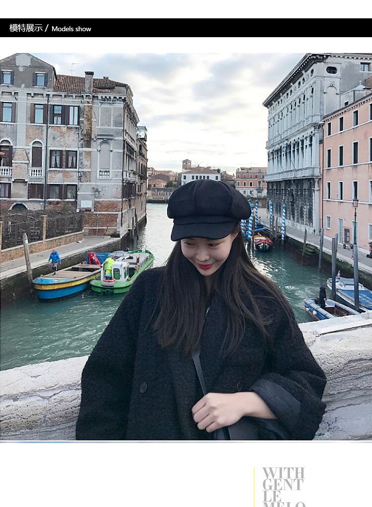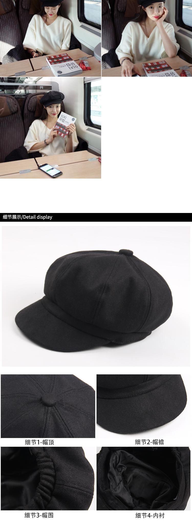 帽子女性の秋と冬のウールの八角形の帽子甘くてかわいいカボチャの帽子英国の野生のレトロな流行のベレー帽のキャスケットの帽子 ブラック・アイド・ピーズ30286668621