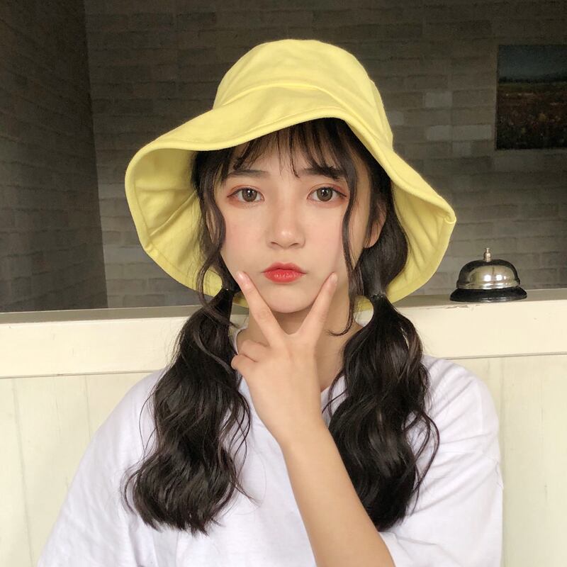 ese日焼け止めフィッシャーマンハット女性夏カジュアルワイルドサンハット小さな新鮮な学生かわいいポットハット夏 ブラック・アイド・ピーズ13457869318