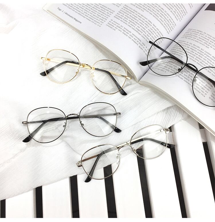 ネットレッド原宿スタイルメタルフレームプレーンフラットミラートレンディな男性ストリートシューティングラウンドフェイスレトロ学生近視グレ女性 ブラック・アイド・ピーズ79792800168