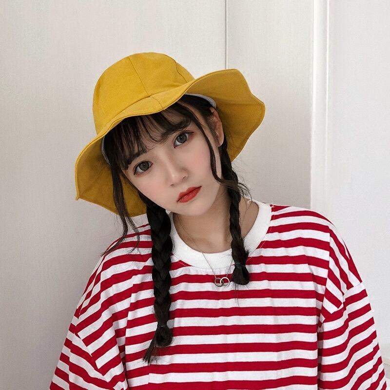 フィッシャーマンハット女性夏ワイルドバージョンのソフト学生リトルイエローハットフレッシュシェードハット日焼け止め原宿盆地ハット ブラック・アイド・ピーズ34235847291