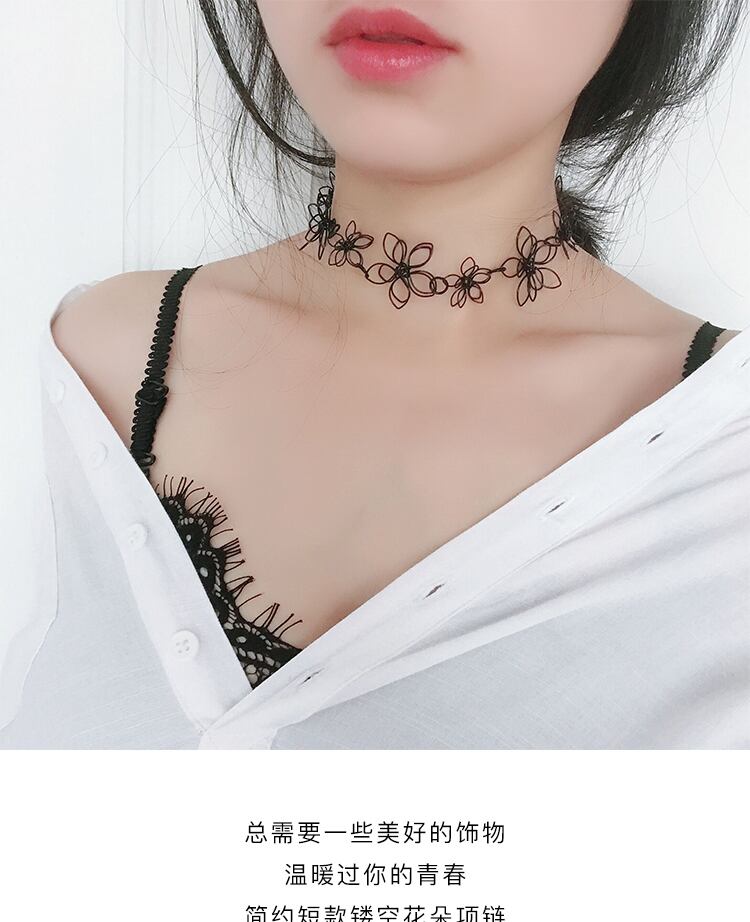 原宿パーソナリティオールマッチコールドウィンドブラックホローフラワーネックレス女性気質ショート鎖骨チェーンカラーカラーネックレストレンド ブラック・アイド・ピーズ81148072394