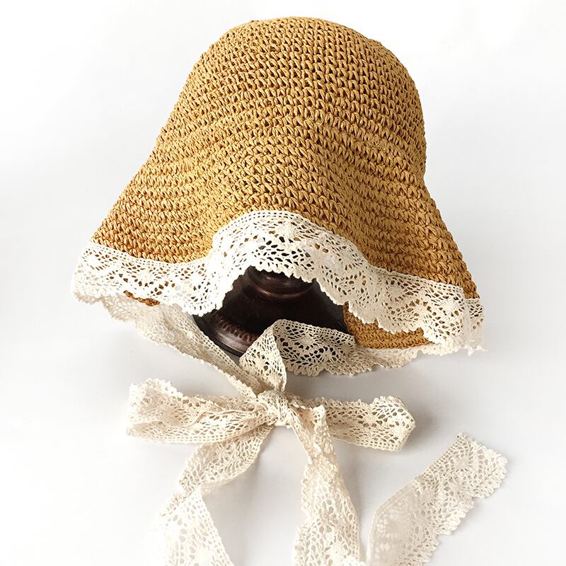 インレース麦わら帽子のバージョン女性の夏のお出かけワイルドビーチフィッシャーマンハットese折りたたみ式日よけ帽 ブラック・アイド・ピーズ84523041097