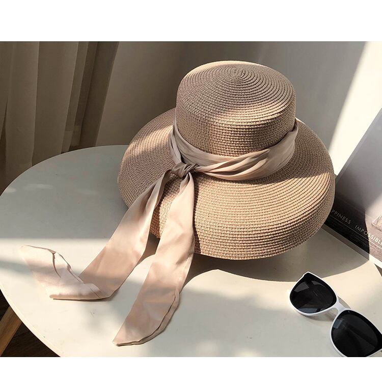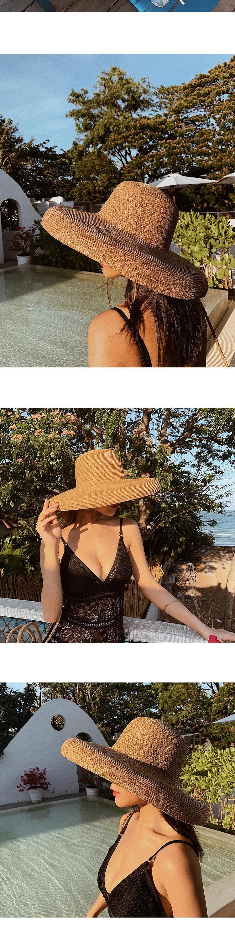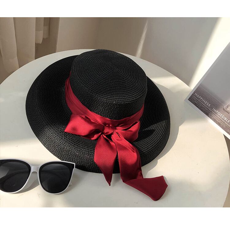 レトロなヘップバーン帽子女性の夏小さな新鮮なネット赤い大きな軒休日海辺のビーチ麦わら帽子日焼け止め日よけ帽 ブラック・アイド・ピーズ43435716040