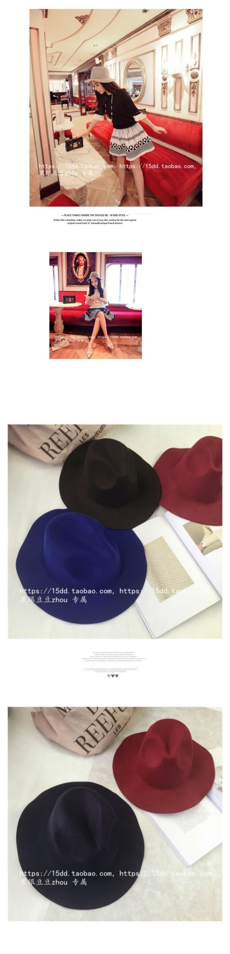 秋と冬のウールの帽子の女性の英国のレトロな小さなシルクハットバージョンの黒い野生の大きなつばのジャズ帽子の潮 ブラック・アイド・ピーズ73213747200