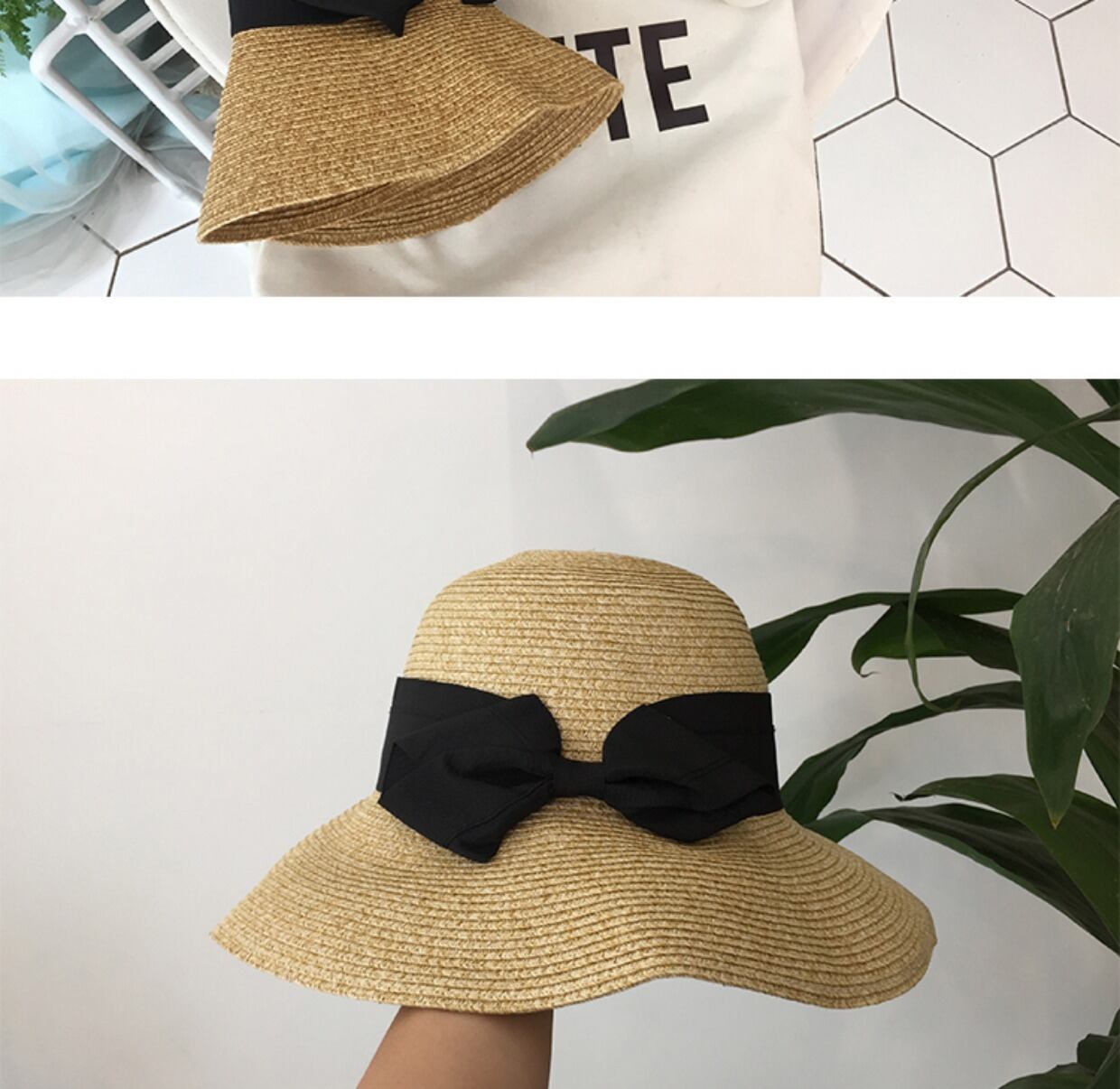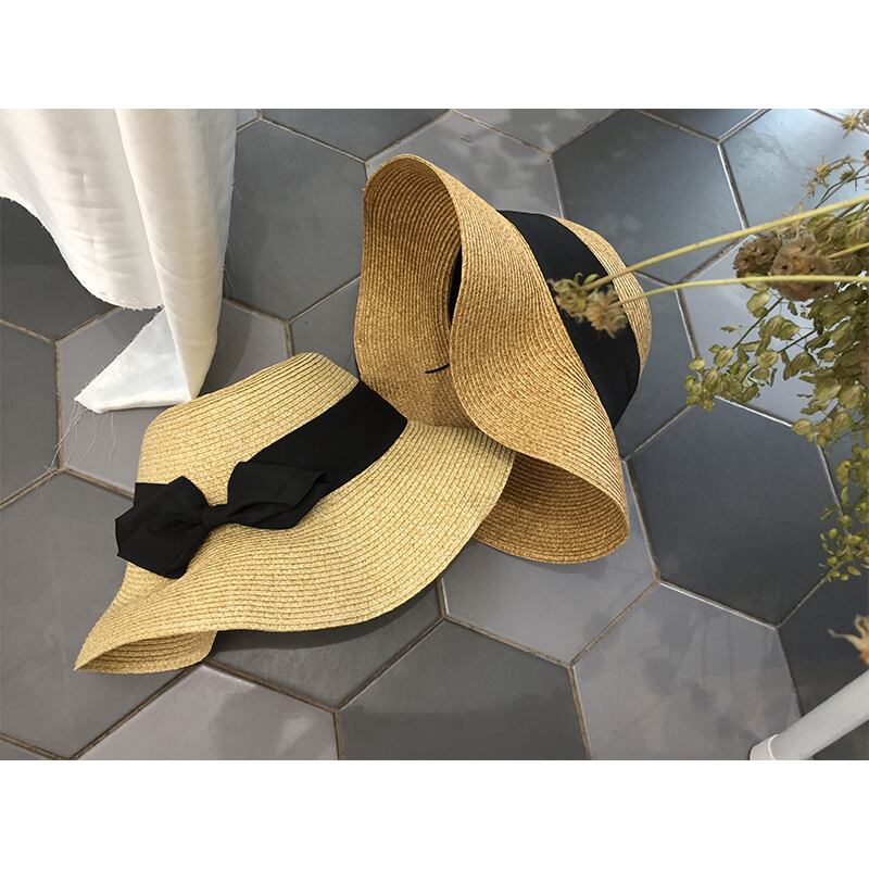 大きな日焼け止めの折り畳み式の日よけ帽の夏との旅行でのワイルドボウビーチハットの孫儷の同じスタイルの麦わら帽子の女性バージョン ブラック・アイド・ピーズ932163485