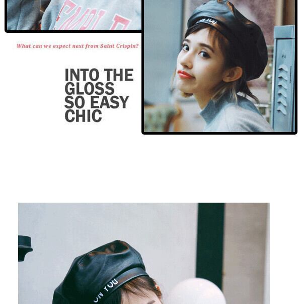 秋冬レターベレーカジュアルオールマッチパーソナリティレザーペインターハットメスブリティッシュフラットトップベレーハットオスタイド ブラック・アイド・ピーズ48680676365
