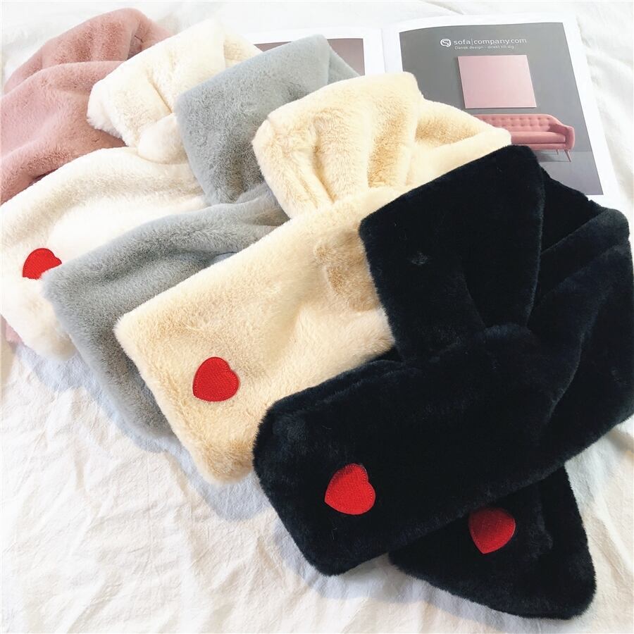 無地のビブ女性冬バージョン愛かわいい濃厚な暖かさの模倣ウサギぬいぐるみスカーフ学生小さな新鮮 ブラック・アイド・ピーズ96887631945