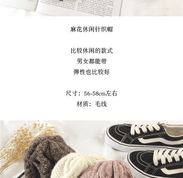ツイストニット帽男性と女性カジュアルオールマッチウール帽子冬の暖かさ耳保護コールドハット潮愛好家の帽子 ブラック・アイド・ピーズ16392552593