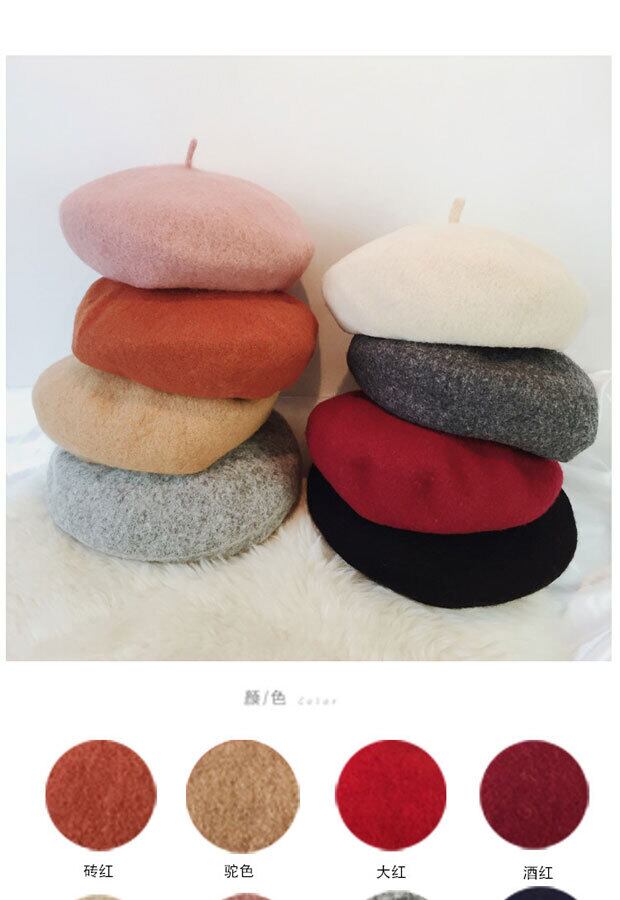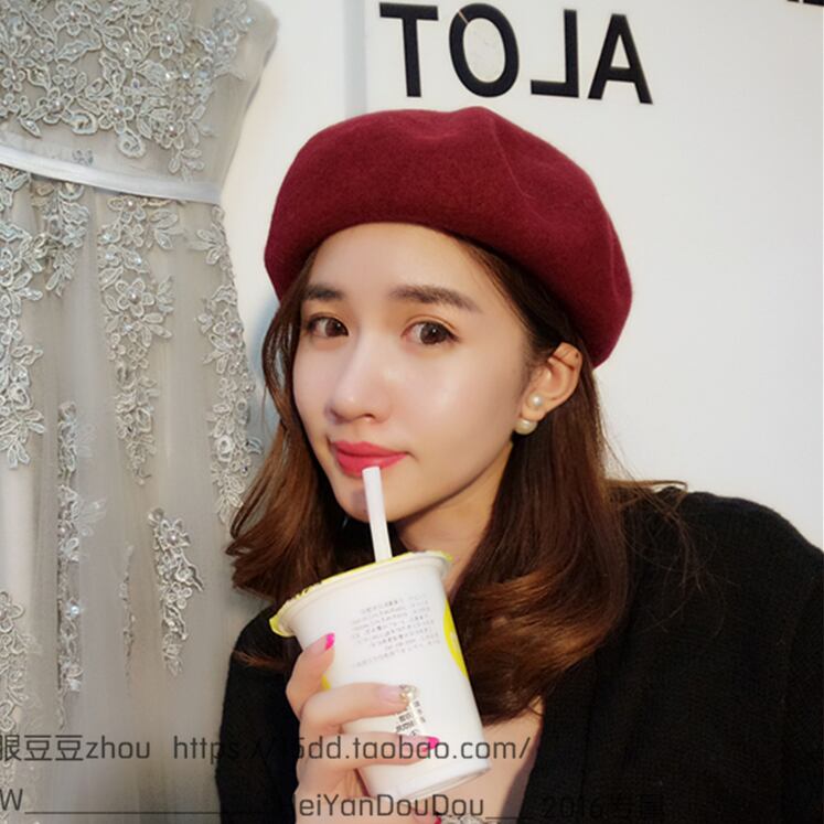 野生の秋と冬のバージョンのウールのベレー帽レディースシンプルな英国のファッションベレー帽画家の帽子ビスケットの帽子 ブラック・アイド・ピーズ68080872671