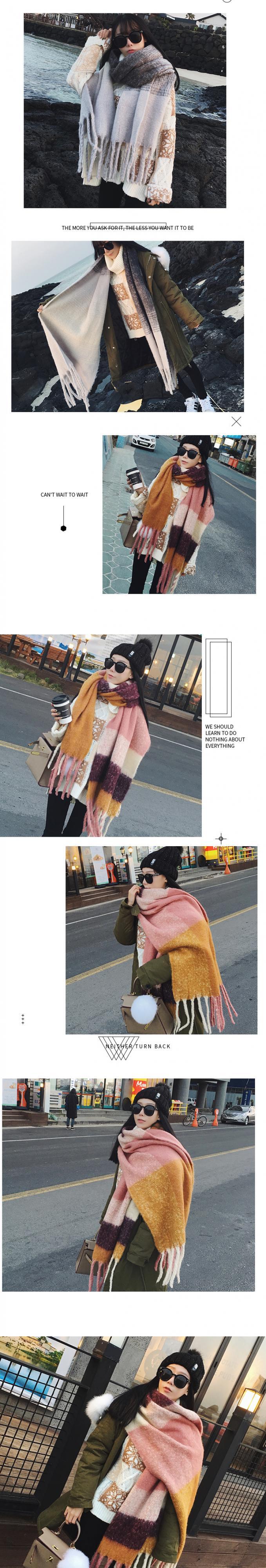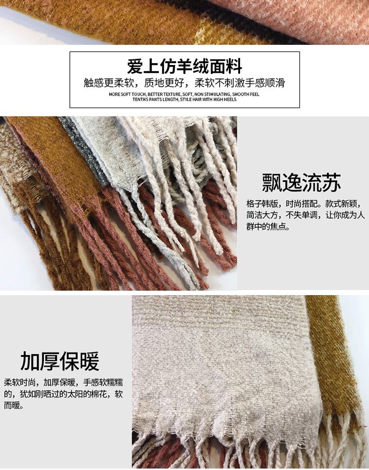 ハンファンカラーマッチングロングテルイミテーションカシミヤスカーフレディース厚手ウォームショールデュアルユーススカーフ秋冬学生トレンド ブラック・アイド・ピーズ76285518299
