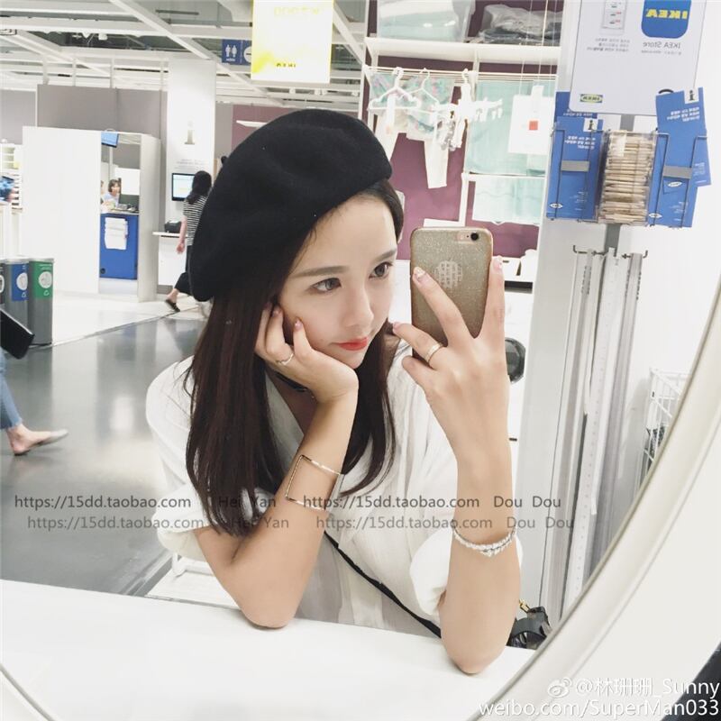 純粋な色のウールのベレー帽の帽子の女性の秋と冬の画家の帽子のバージョンは、スタイルのつぼみの帽子のウールの帽子の女性の潮の冬を改善しました ブラック・アイド・ピーズ22079444196