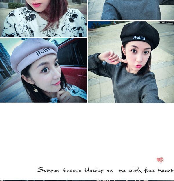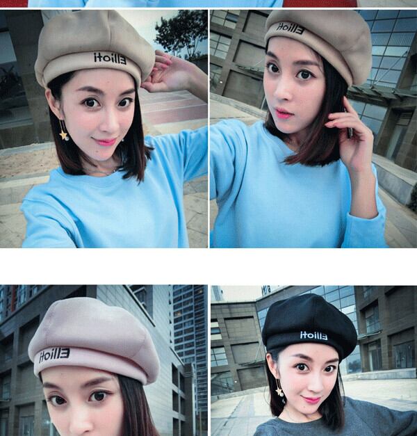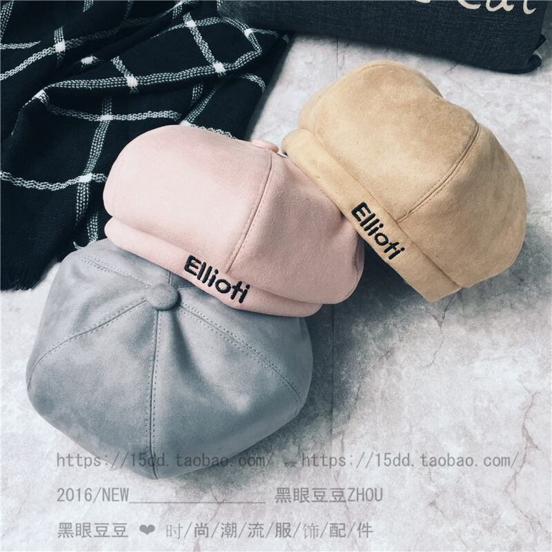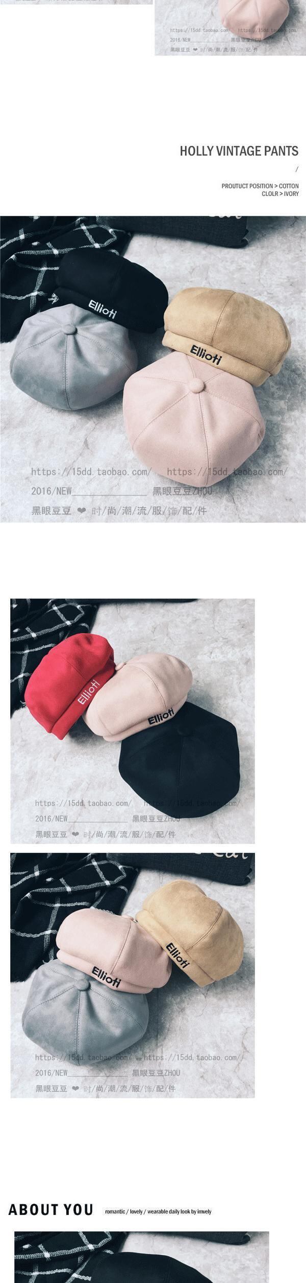 ワイルドスエードレターベレット八角形帽子秋冬男女ピュアカラーカボチャ画家帽子潮のバージョン ブラック・アイド・ピーズ53998933359