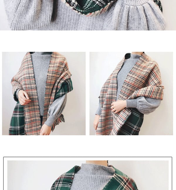 冬の暖かいスカーフの女性のデュアルユース両面大きなショールは暖かい格子縞のニットの男性と女性のビブスカーフのトレンドを厚くしました ブラック・アイド・ピーズ46158014998