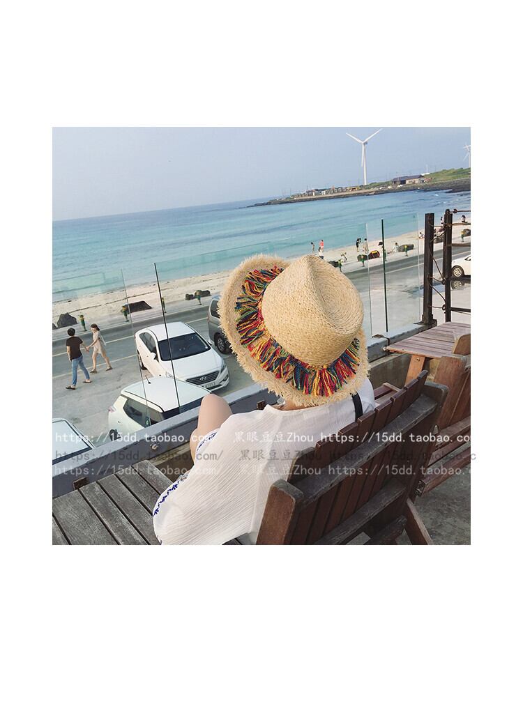 夏の女性の色の縁取り麦わら帽子休日の日よけ帽日焼け止めビーチの日よけ帽女性の夏の帽子 ブラック・アイド・ピーズ15756794013