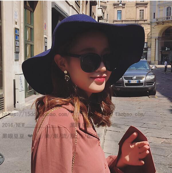 大きな軒の弓結びウールの秋と冬の太陽の帽子のバージョン英国のドームキャメルカジュアルジャズ帽子女性の潮 ブラック・アイド・ピーズ29679131912