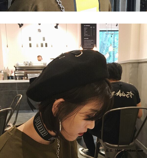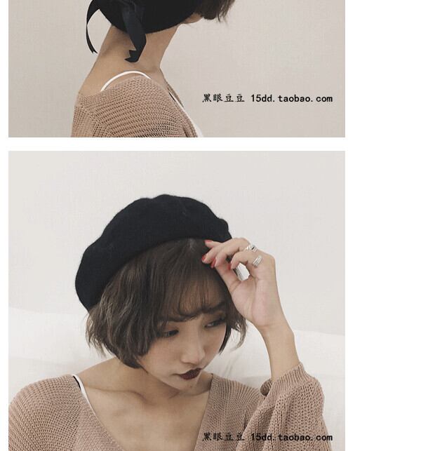 原宿包帯ボウノットウールベレー帽秋冬つぼみアートペインターハットワイルドカジュアルトレンディ ブラック・アイド・ピーズ32827512032