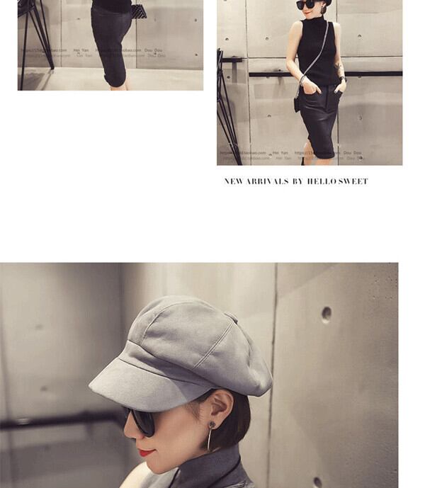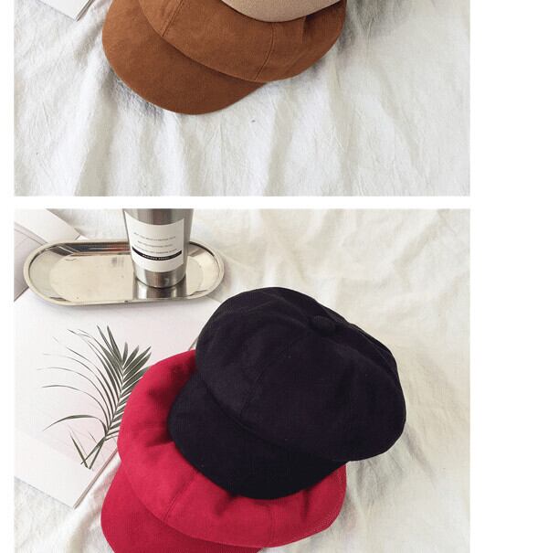 ベレー帽女性秋冬スエード八角形帽子男性英国画家帽子レディースバージョン無地キャップ ブラック・アイド・ピーズ88455423520