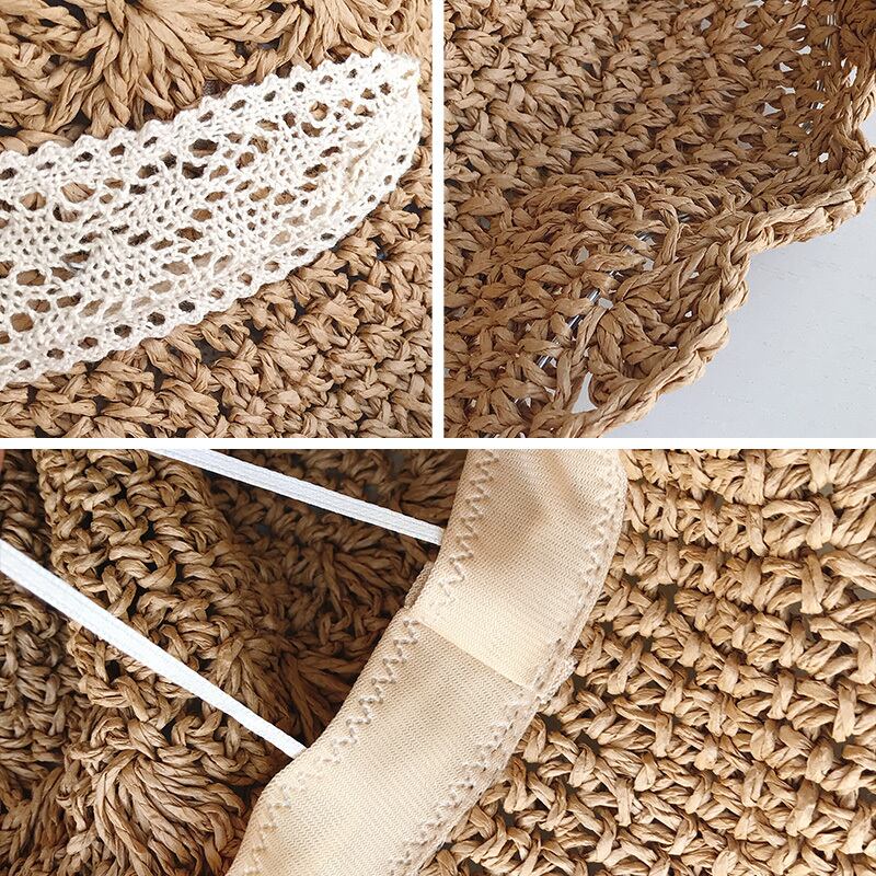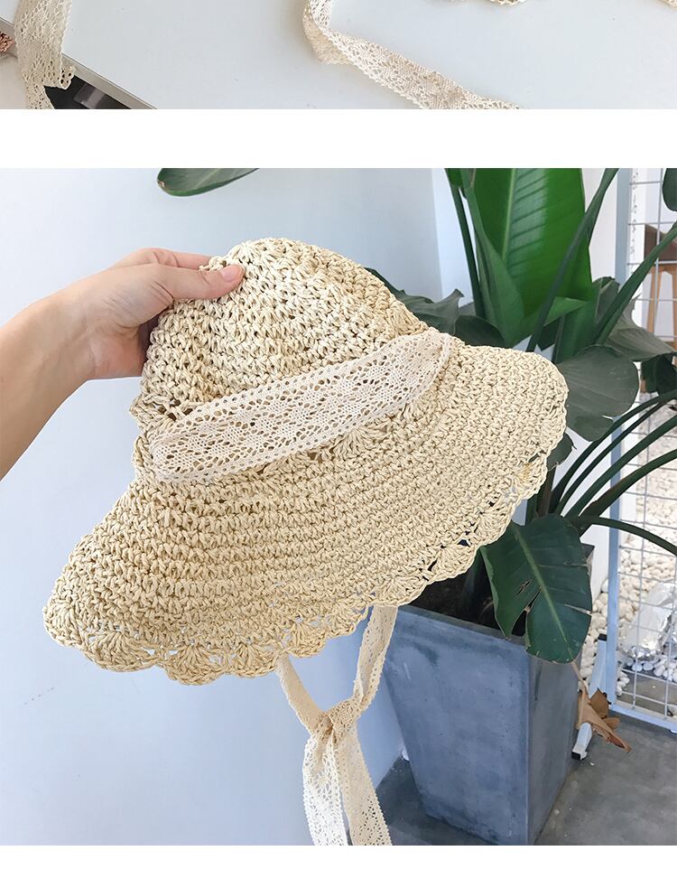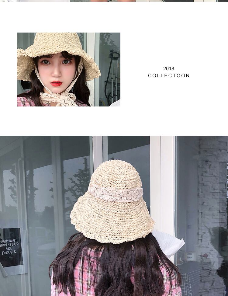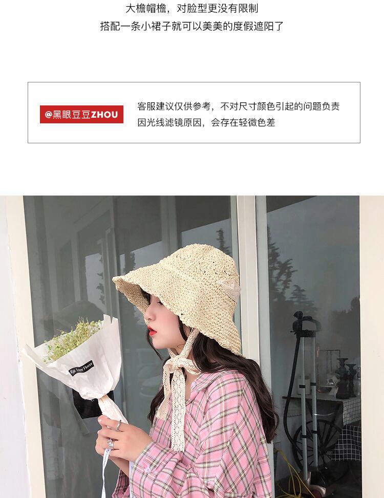 insのバージョン小さな新鮮な野生の麦わら帽子女性の夏のストラップ弓ホリデービーチ帽子ビッグエッジ折りたたみサンハット ブラック・アイド・ピーズ73127187372