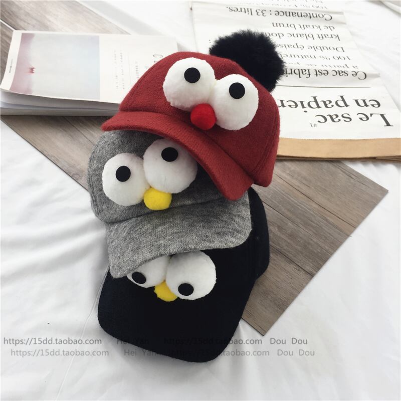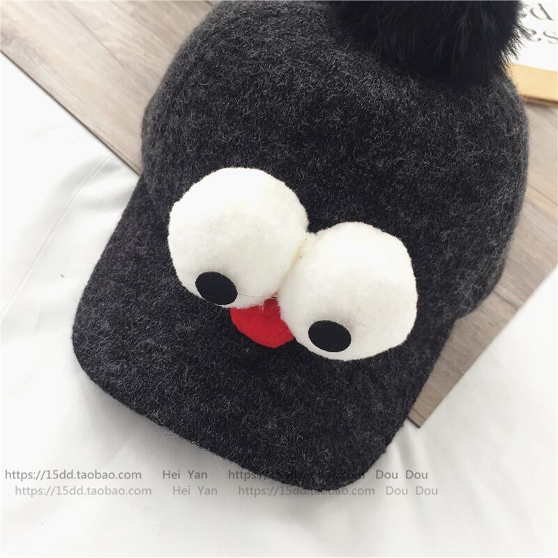子供かわいい目ヘアボール野球帽アヒル舌帽子バージョンの潮赤ちゃん男性と女性秋と冬の太陽の帽子 ブラック・アイド・ピーズ71113585887
