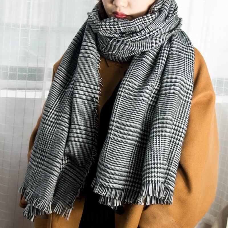 ウールスカーフの女性の冬のロングスタイルのバージョン英国のレトロなクリックチェック柄のスカーフショール暖かいデュアルユース ブラック・アイド・ピーズ69811209587