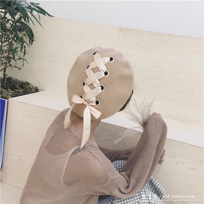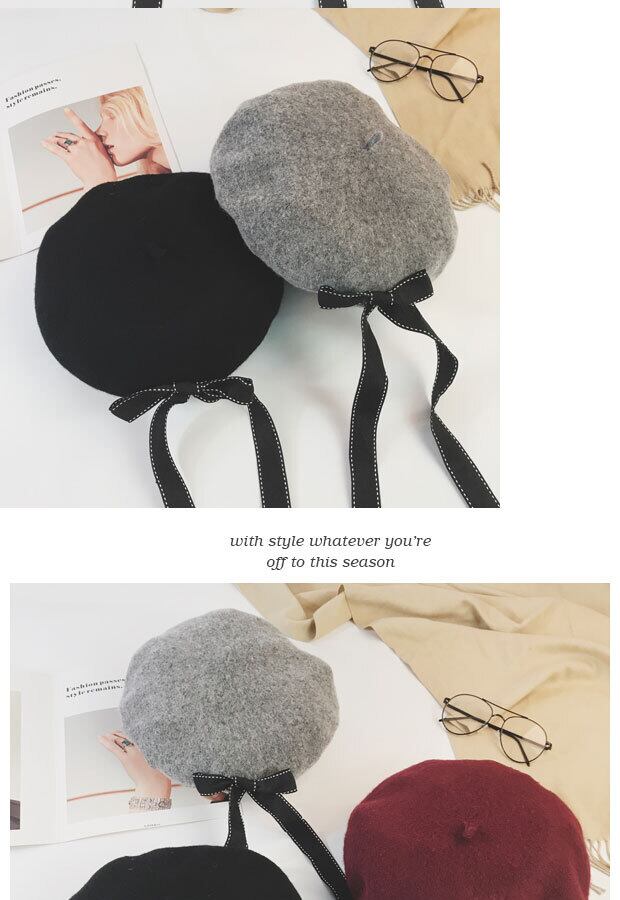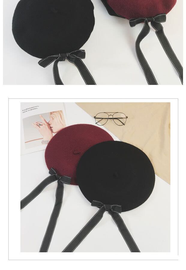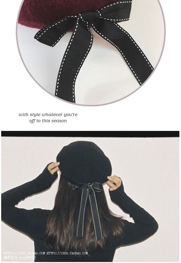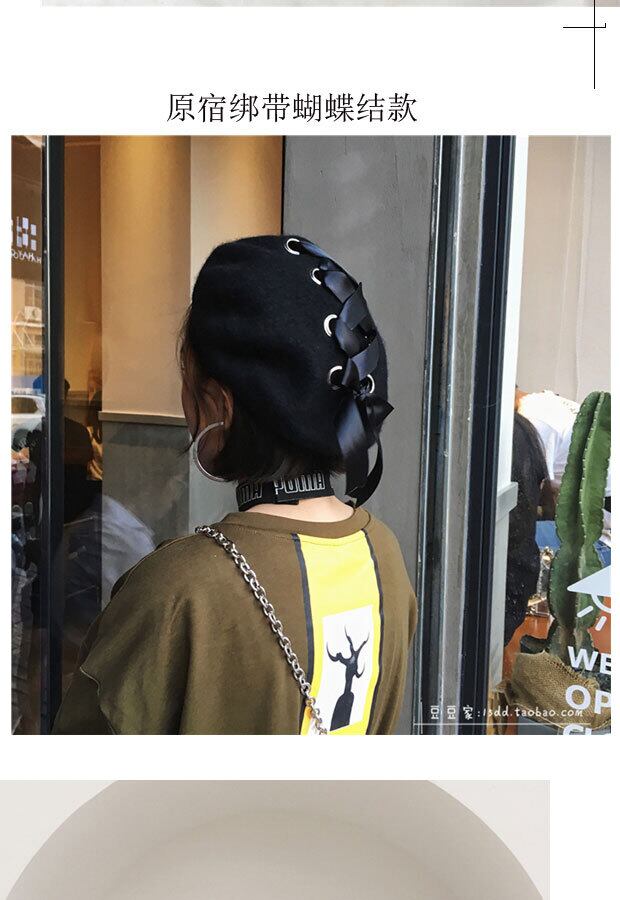 原宿パーソナリティボウウールベレー帽バージョンのタイドレディース秋冬つぼみペインターハットワイルドブラック ブラック・アイド・ピーズ89182506759