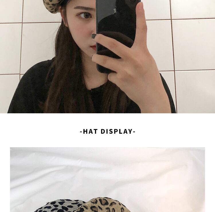 レオパードプリント柄スタンダードオータムウィンター レトロ 帽子 秋物 冬物 ベレット ヘアアクセサリー ブラック・アイド・ピーズ68198315031