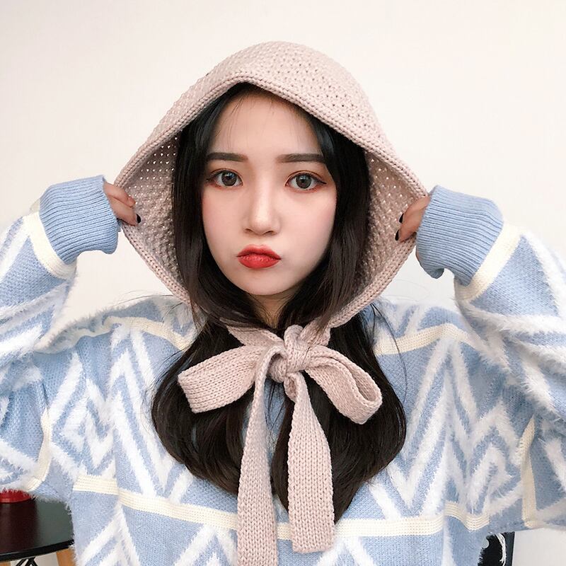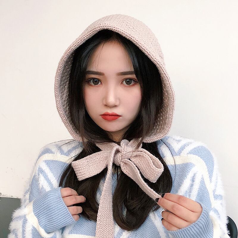 オータムウィンターニットキャップ フード 帽子 大人ガーリー スウィート キュート カジュアル 秋物 冬物 ブラック・アイド・ピーズ21282819645