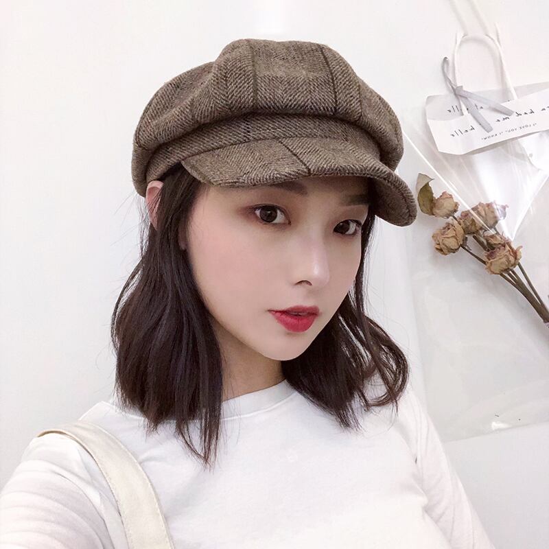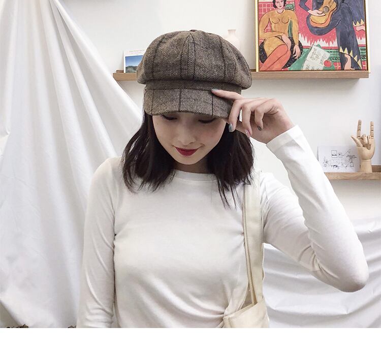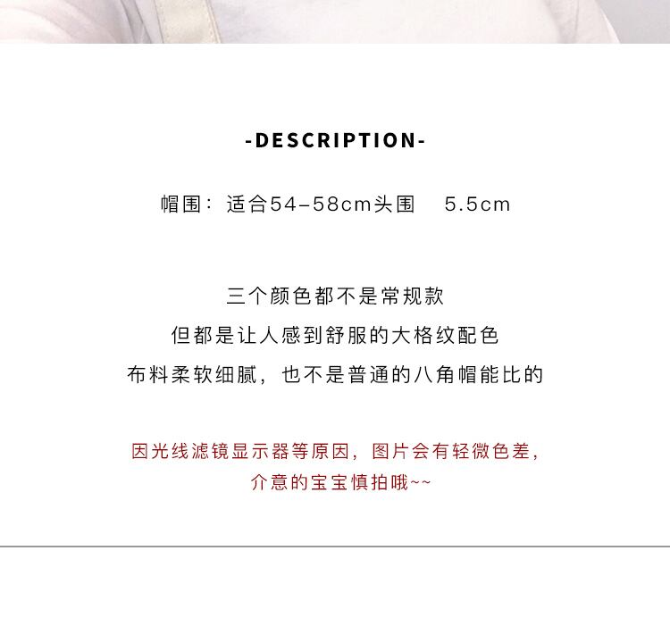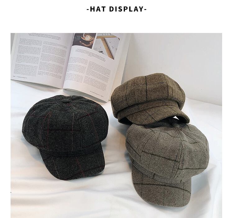 スタイルカジュアル格子柄スタンダードキャップ レトロ 帽子 ベレット ヘアアクセサリー ブラック・アイド・ピーズ7062690066