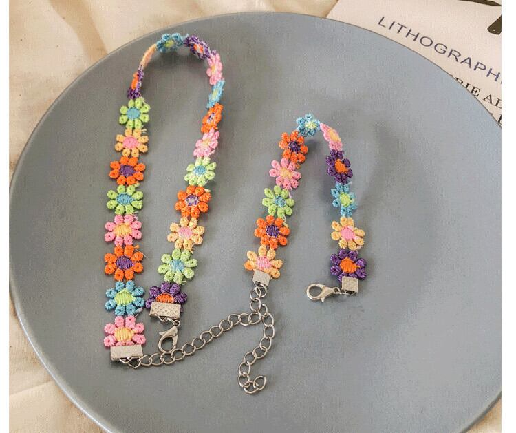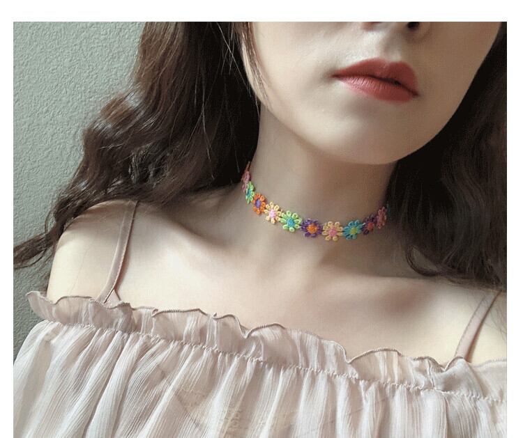 カラーFlowerデザイン ネックレス ブレスレット レース 大人ガーリー スウィート キュート カジュアル チョーカー フラワーデザイン ブラック・アイド・ピーズ5896403445