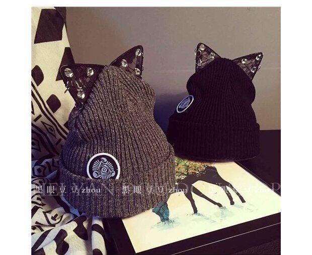 スタイルレースラインストーンニットウールオータムウィンター 帽子 大人ガーリー スウィート キュート カジュアル 秋物 冬物 ヨーロピアン ブラック・アイド・ピーズ36872832782