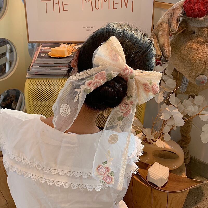 Flowerデザイン リボンヘアピン スプリングレッドトップス アクセサリー 大人ガーリー スウィート キュート カジュアル 春物 フラワーデザイン ブラック・アイド・ピーズ15863581372
