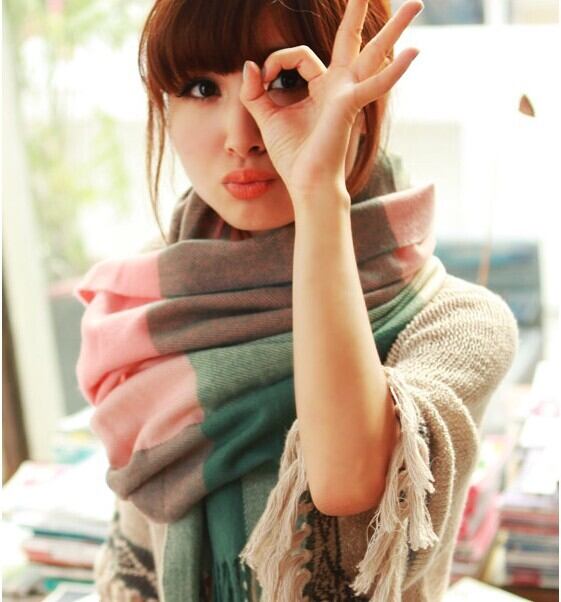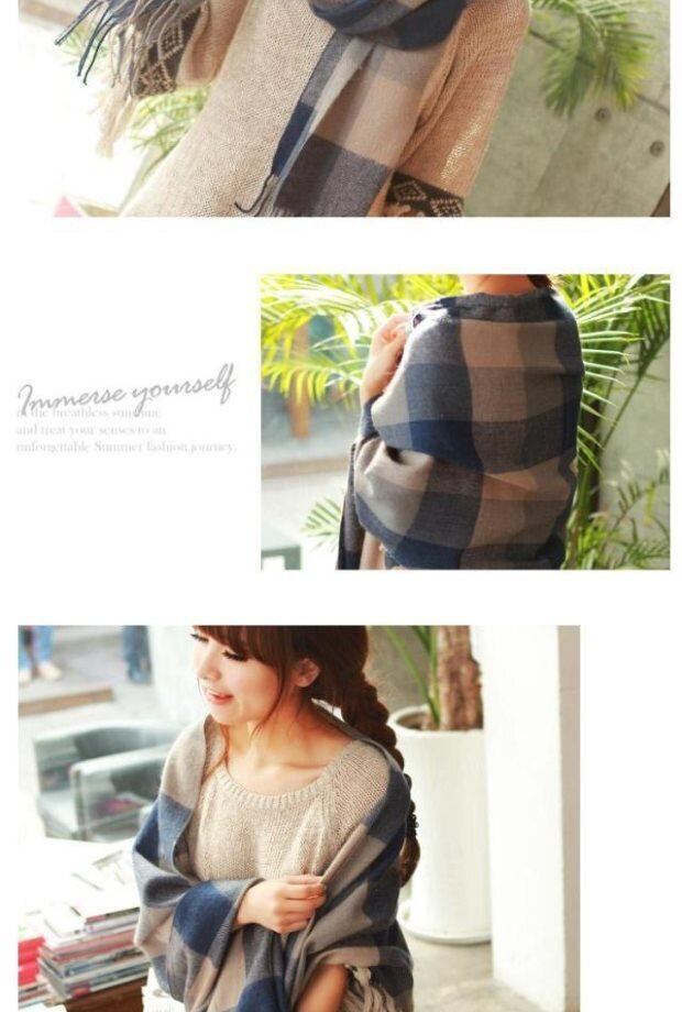 ウールニット格子柄スカーフ オータムウィンター 秋物 冬物 ブラック・アイド・ピーズ21247728623