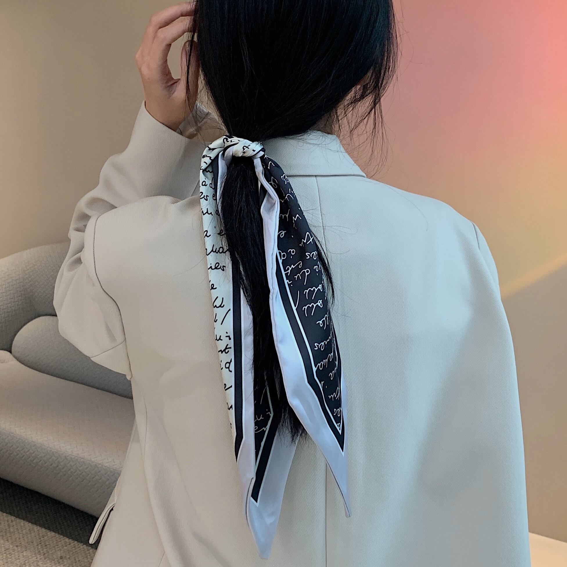 スカーフ スプリングオータムヘアバンド ロングアクセサリー レッド 春物 秋物 シルク スクウェア ブラック・アイド・ピーズ67404980507