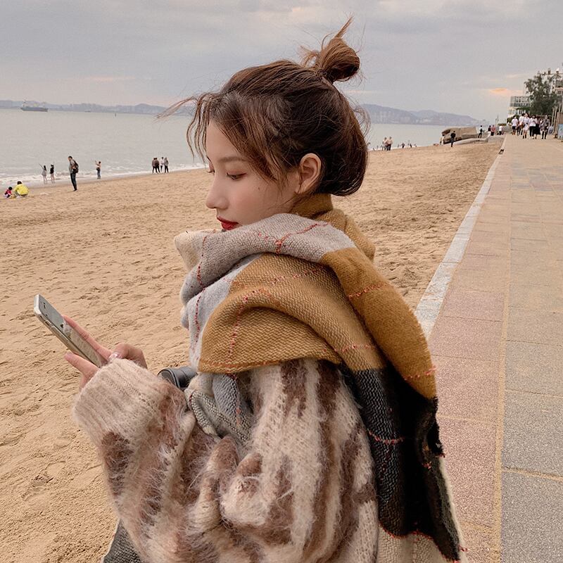スカーフ ウィンターカラー格子柄 冬物 ブラック・アイド・ピーズ20729428675