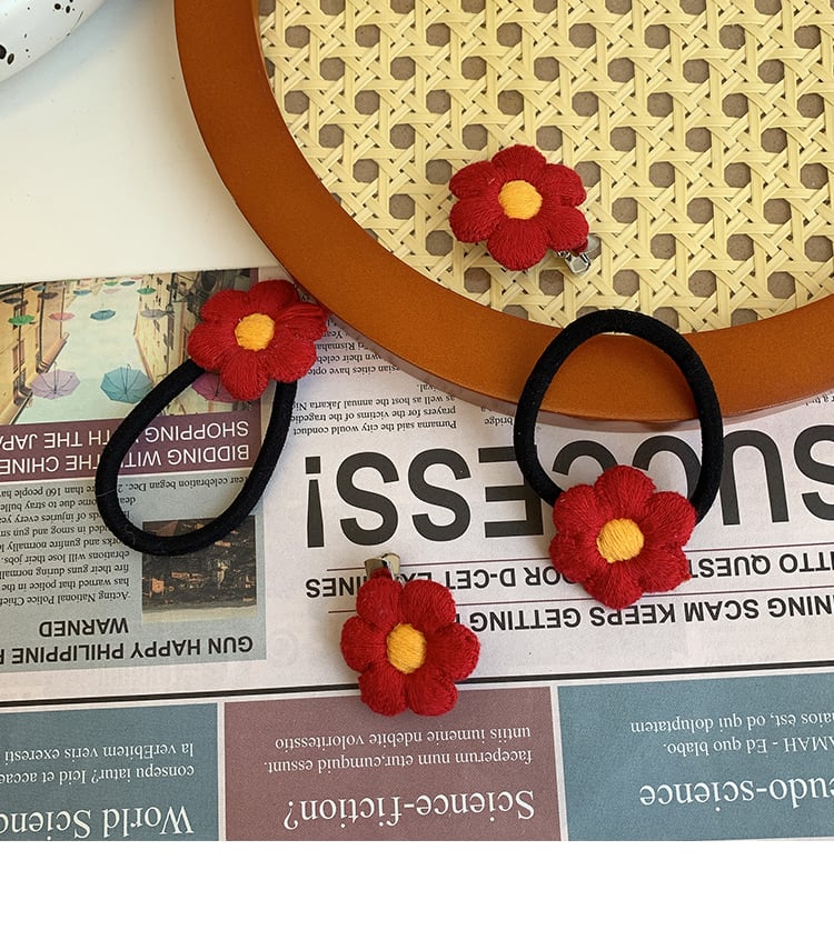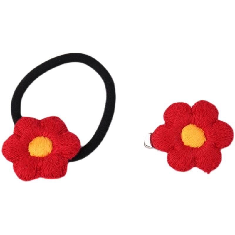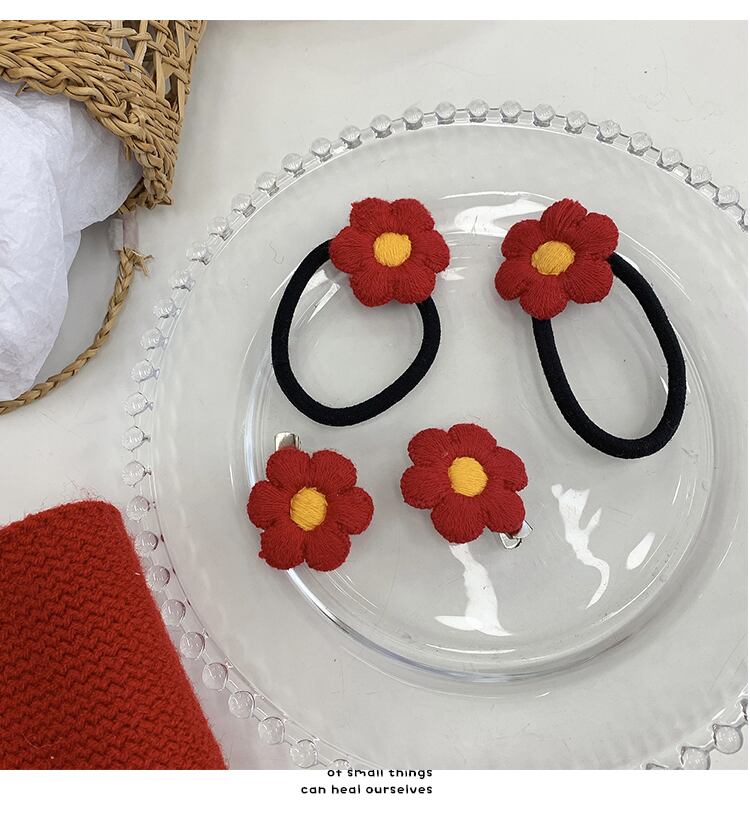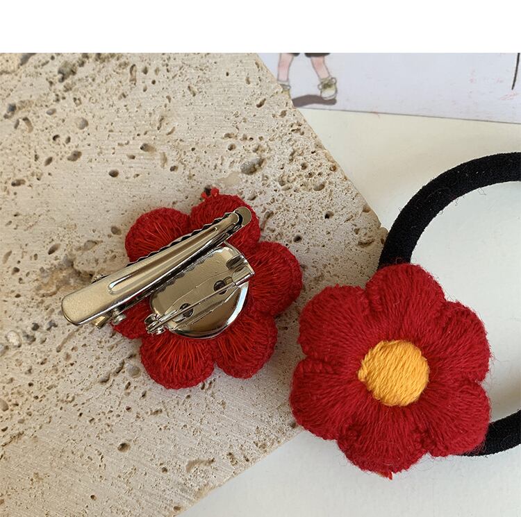 レッドFlowerデザイン ヘアピン ウールリング アクセサリー 大人ガーリー スウィート キュート カジュアル 指輪 フラワーデザイン ブラック・アイド・ピーズ35831559513