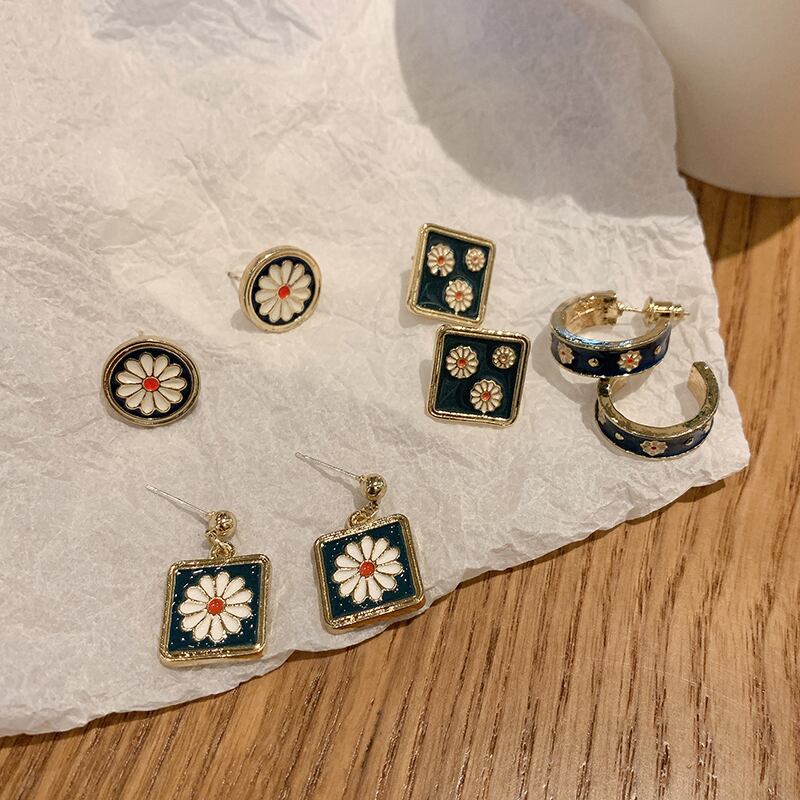 色:イヤリング,丸いイヤリング,丸いイヤリング,デイジーパーティーピアス,デイジースクエアピアス,3つのデイジー