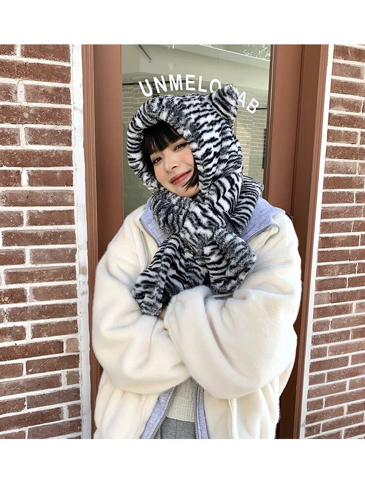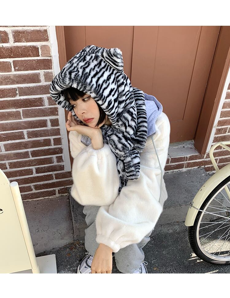 パターンスカーフ ウィンターフード 帽子 大人ガーリー スウィート キュート カジュアル 冬物 ブラック・アイド・ピーズ81550479342