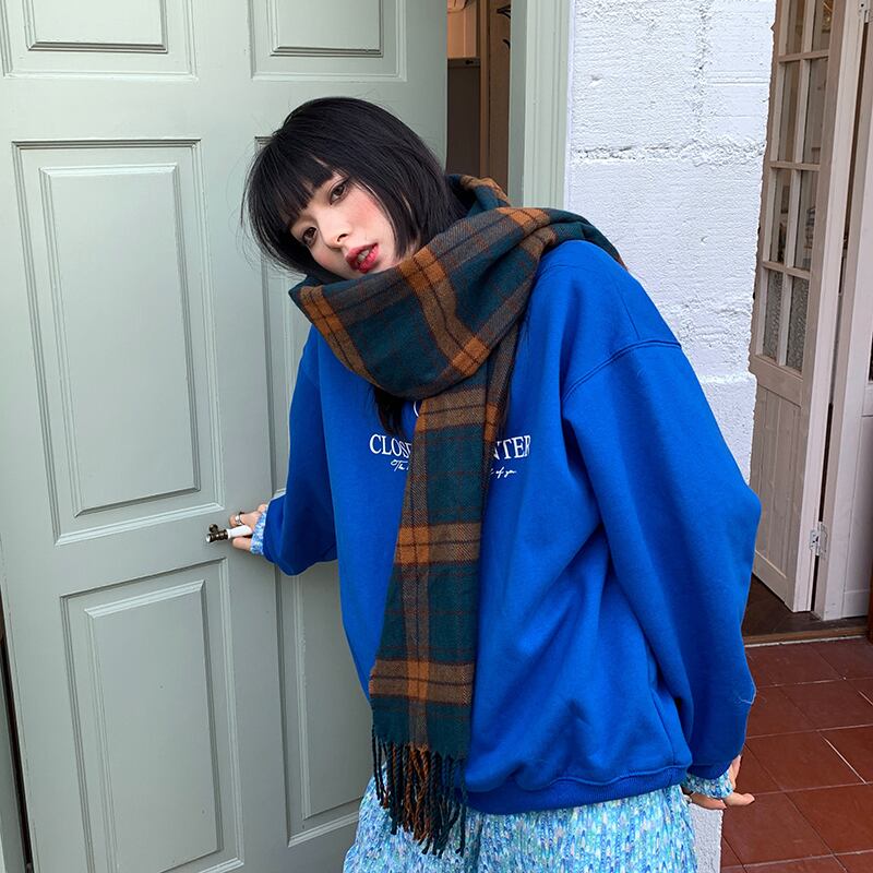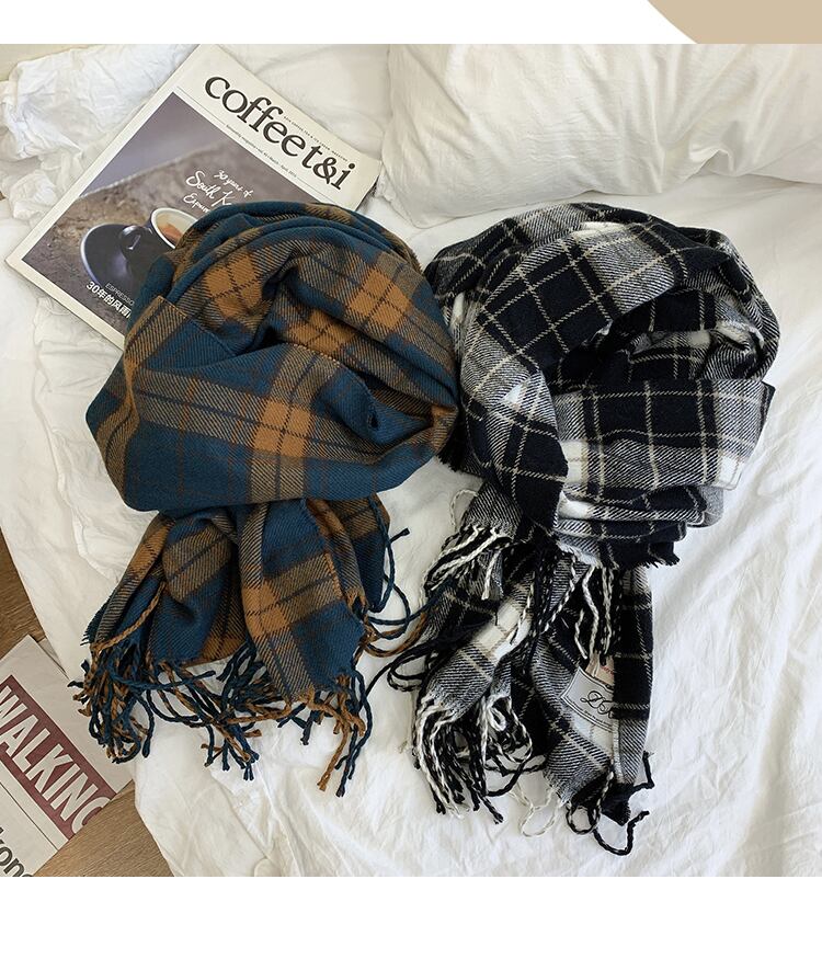 スタンダード格子柄スカーフ オータムウィンター レトロ 秋物 冬物 ブラック・アイド・ピーズ40554100196